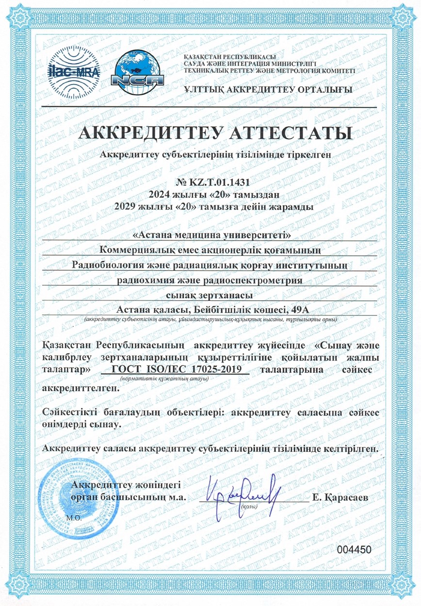 Комитета атомной энергетики МИНТ РК на занятие «Специальная подготовка специалистов и персонала для деятельности, связанной с использованием атомной энергии» №19009260 от 24.04.2019 г.
