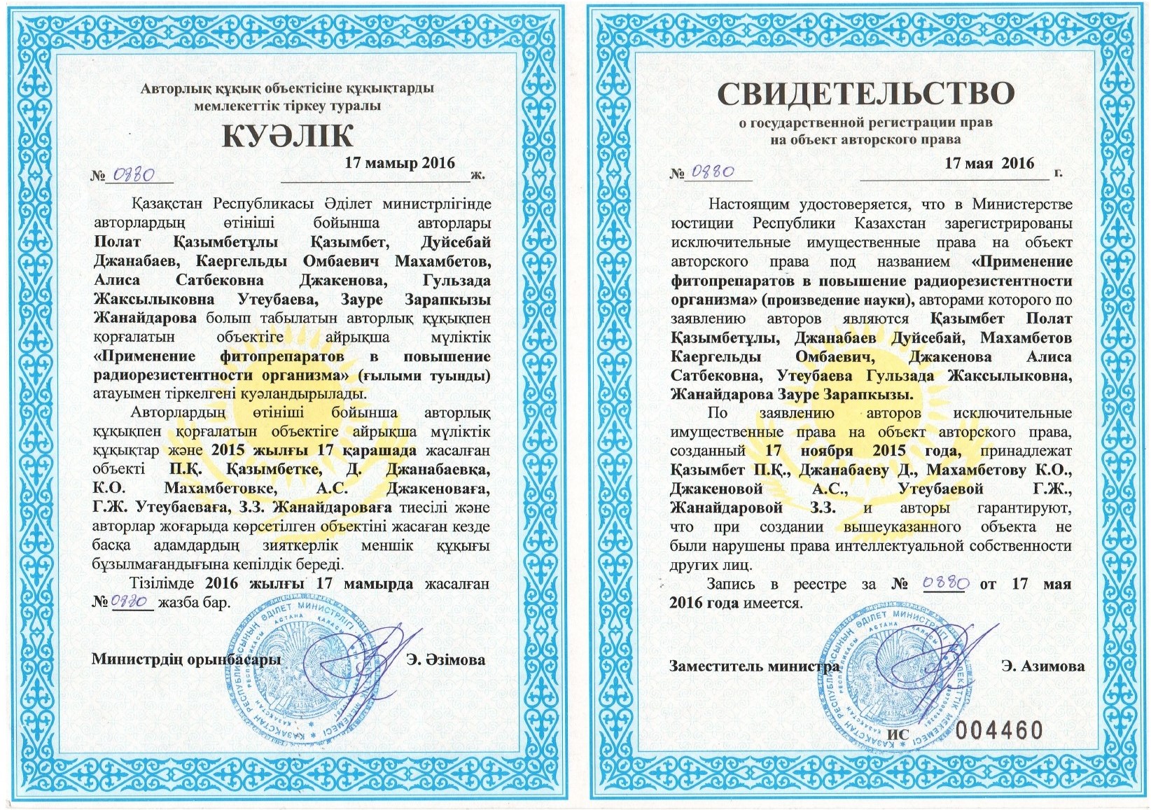 Сотрудниками Института создана электронная база данных по заболеваемости и накопленной дозы персонала группы А промышленных предприятий и на ее основе - действующий модуль «Отраслевой радиационно-эпидемиологический регистр (ОРЭР) работников радиационно-опасных предприятий». В настоящее время в Департаменте цифровизации здравоохранения МЗ РК ведется работа по интеграции ОРЭР с медицинской информационной системой МЗ РК.